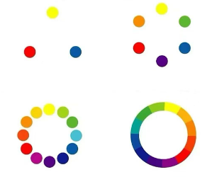 Secondary colours—green, violet, and orange—are created by mixing two primary colours: