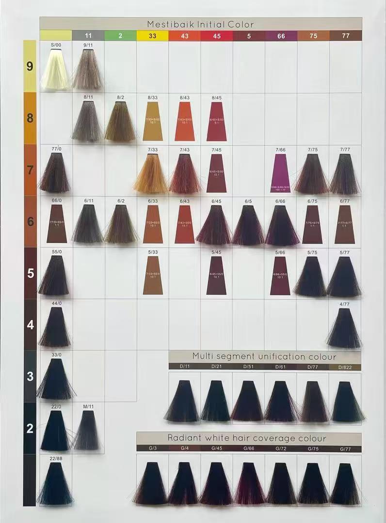 Mestibaik Initial Colour is an ammonia-free hair dye, offering a gentle yet effective coloring experience. By incorporating innovative color wheel theory, it allows precise color correction and tone adjustments, ensuring long-lasting, even color results. The advanced ammonia-free formula minimizes damage to hair and scalp, making it an ideal choice for those seeking vibrant color with minimal irritation.